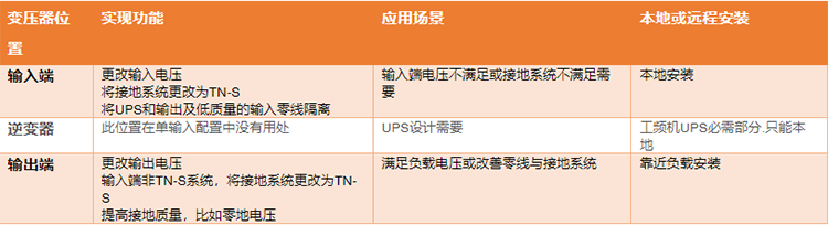 UPS系統(tǒng)配備了隔離變壓器的四個位置: